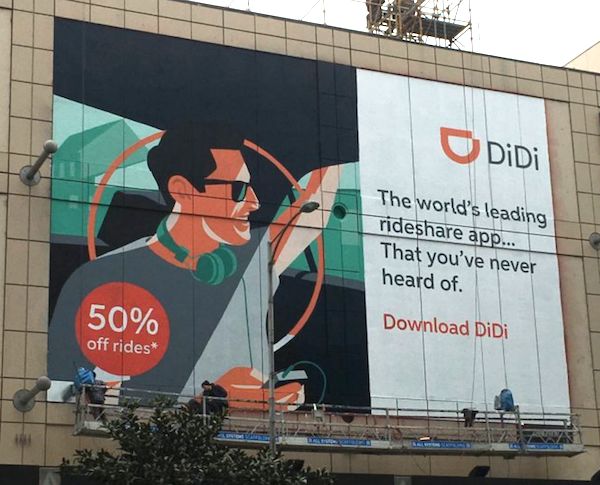 他們巨資買下了墨爾本街頭的橫幅廣告,並聲稱自己是世界領先的打車軟件