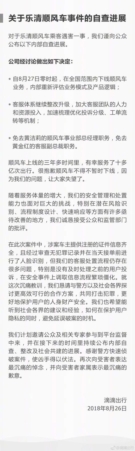 不作為的滴滴順風車終於下線了。