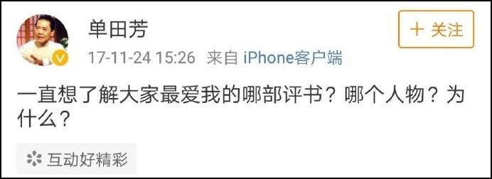 包括單老也會玩微博。一年前,單老還發微博詢問大家,最喜歡自己的哪一部評書?哪個人物?又是因為什麼?