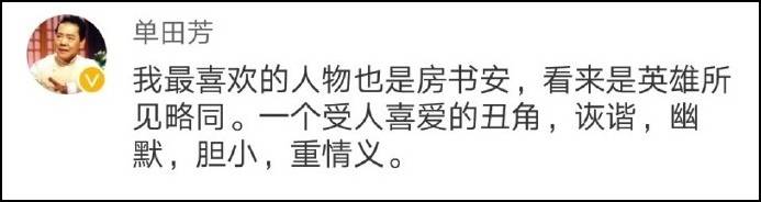 “最喜歡房書安,詼諧,幽默,膽小,重情義”