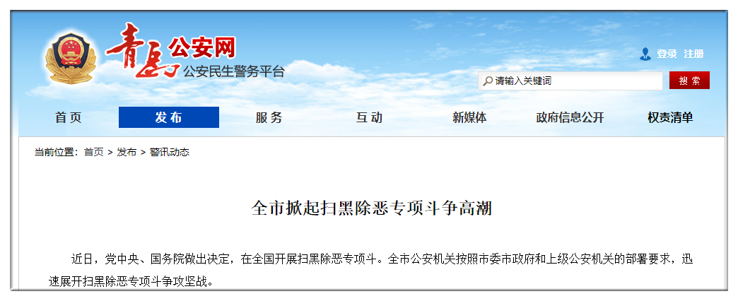 今年年初,中共中央、國務院發出《關於開展掃黑除惡專項鬥爭的通知》,此後中央不斷釋放“掃黑除惡”信號,一場掃黑除惡風暴席捲全國。