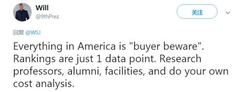 “ 美國的一切都是:買家需當心,排行只是一個數據點,調查研究教授、 校友、 設施, 做你自己的成本分析。”