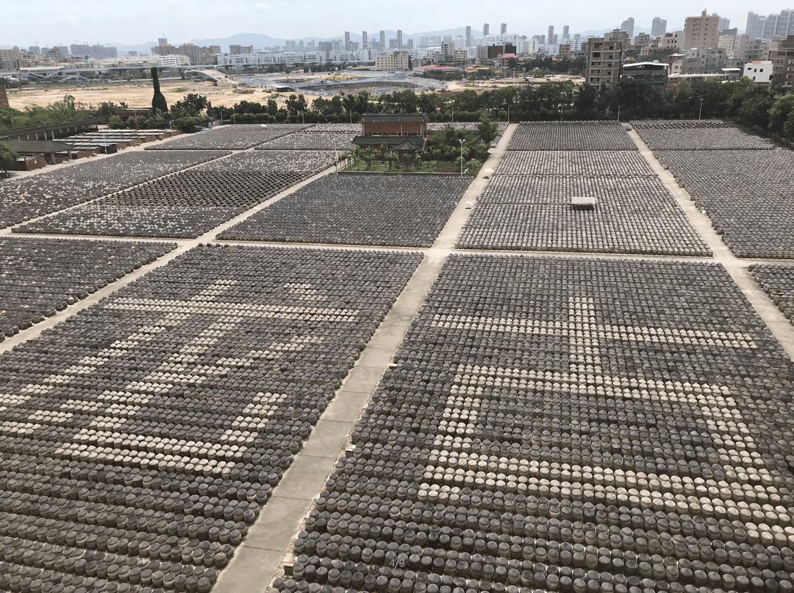 郭文軍總經理告訴我,小小一罐醬,黑乎乎不起眼,卻讓不少前來的日本醬油專家驚訝不已。一直自詡為“獨具匠人精神”的民族,沒想到在中國廈門的古龍見識到了更地道、更傳統、更專注的精神。園區內,6萬隻由各地收購來的大陶缸縱排豎列,鋪滿在一個五萬平方米的空場上,歎為觀止。這裏,打造了一個“亞洲之最”,是亞洲最大的傳統醬油釀造曬場。