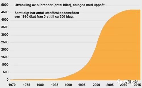 瑞典每年被焚燬的汽車數,圖自瑞典《每日新聞網》