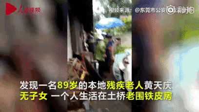 16日,廣東東莞,民警挨家挨户動員瓦房、鐵皮房中的羣眾撤離。一位孤寡老人不願離開,民警和村幹部一起動員。