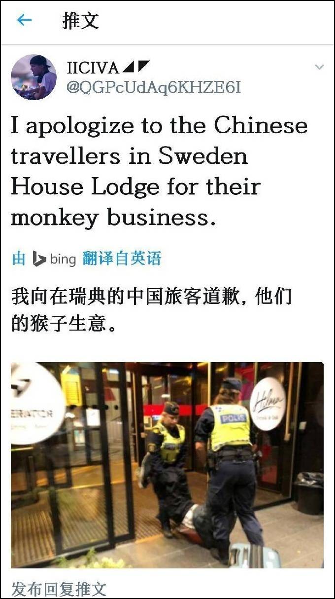 旅館經理告訴《瑞典晚報》記者,他早上剛醒來,就被自己的旅館在中國媒體上迅速出名的消息震驚了。