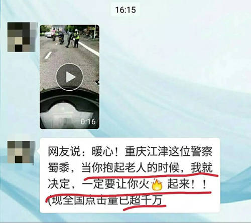 重慶江津輔警扛殘障老人過公路,獲近百萬網友點贊_風聞