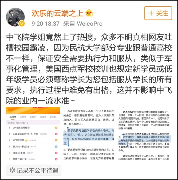看完如此“社會”的中飛院學姐,我趕緊跑去關懷了我身處軍校的發小和閨蜜_風聞
