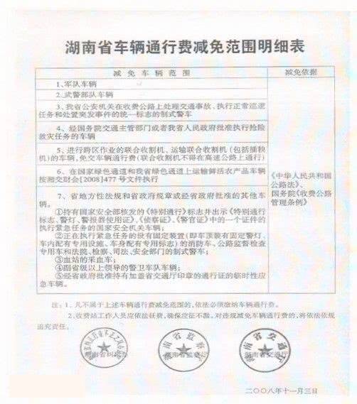 湖南省車輛通行費減免範圍明細表(FM90.5中國交通廣播)