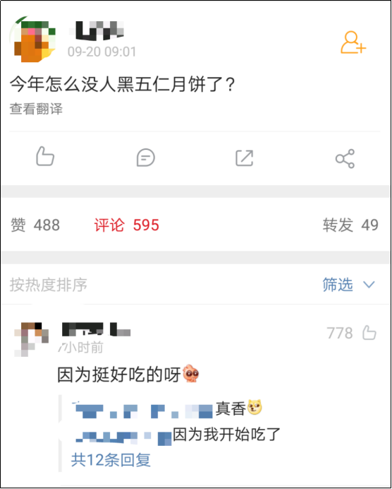 今天還有一位博主問今年怎麼沒人黑五仁月餅了