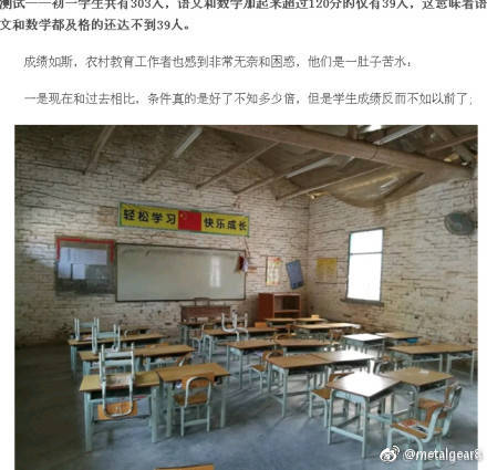 1.一位鄉村支教老師看"撤點並校"的心路歷程http://t.cn/Rsu1pwy …改革開放以來,以城市為中心的發展思路從農村抽取了大量資源,村集體在鄉村生產生活中逐漸喪失了組織動員能力,鄉村教育隨着鄉村的衰落而萎縮。因此解決鄉村教育所面臨的困境,首先需要反思的是城鄉二元發展思路與鄉村一盤散沙的組織狀態,“撤點並校"不過是隔靴搔癢,抑或淪為教育投機,要麼無果,要麼結果適得其反…我讀初中的時候小學沒了,讀高中的時候初中沒了,讀大學的時候高中沒了…開始認同“撤點並校”…重新審視…集中教學是資本的邏輯…政府下結論説分散教學不利於提高教學質量,也增加了教育投入。實際上分散教學並不意味着教學資源投入的增大…我重新反對"撤點並校”,更為關鍵的是,現在的社會把鄉村教育完全推給了教育局。…村集體本可…“撤點並校’給家長增加了很大成本…且不1定帶來教學質量的改善,學生數量增加後,老師難以兼顧差生,更偏向優等生…會加大學生厭學情緒…當鄉村衰落的時候,鄉村教育也會衰落…如今關於教育的很多政策…沒有經過實踐驗證,也沒有進行廣泛調研…