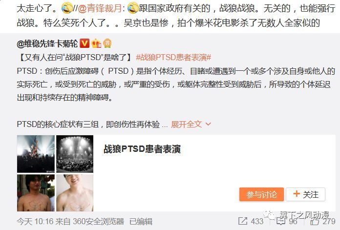 所以很多戰狼PTSD患者選擇了在網絡上發泄……