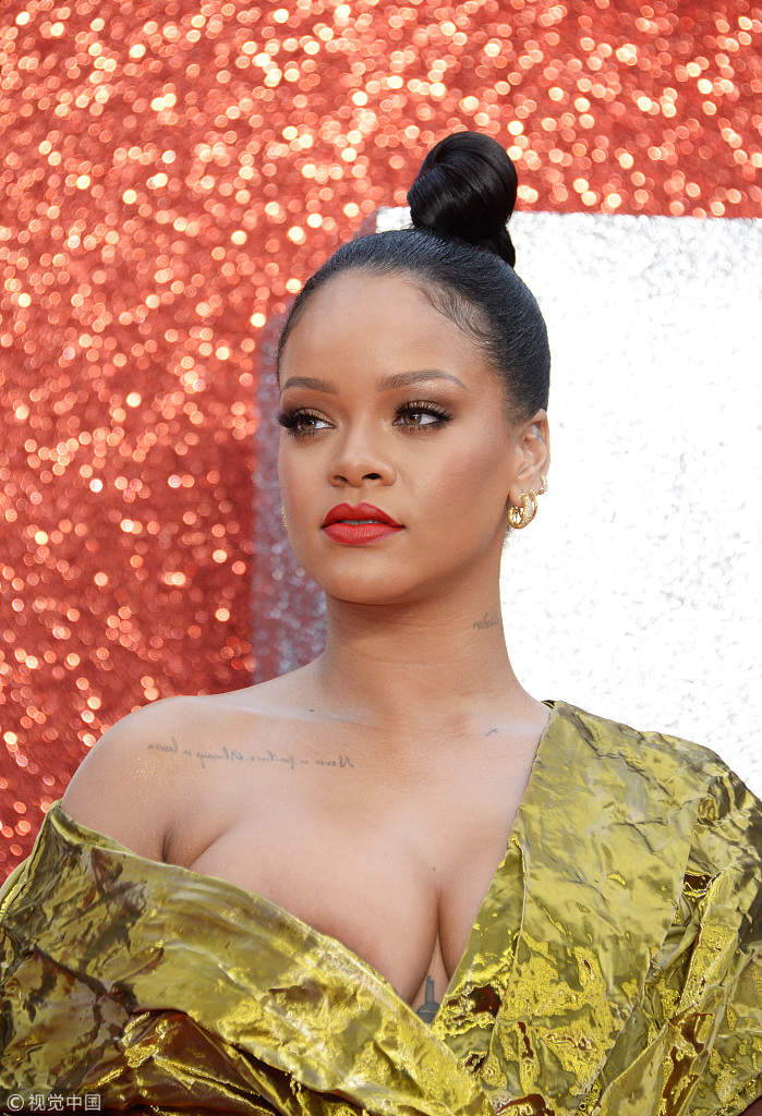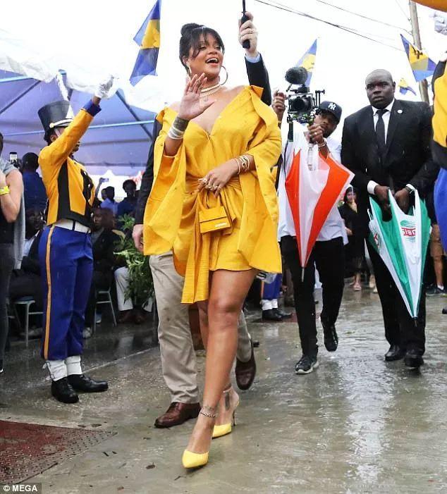 蕾哈娜身着Hellessy 黃裙亮相改名儀式。