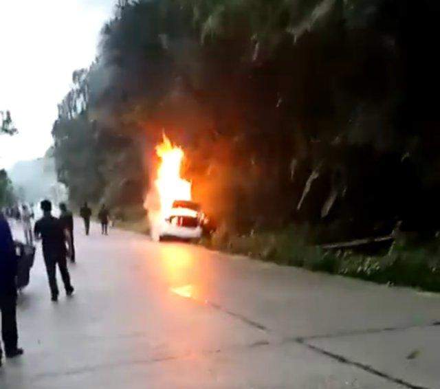 “當時我看到車上的女駕駛員從前門跳下後,大聲哭喊呼救,車身燃起了大火。”9月24日(中秋節)17時許,市民羅先生和妻子駕車經過寧鄉市沙田鄉大塘衝路段時,見前方一輛白色小車燃起熊熊大火。他趕緊撥打了119電話報警,附近不少村民見狀,紛紛提着水桶前來滅火。可悲的是,車上一名男子和兩名兒童在事故中身亡。