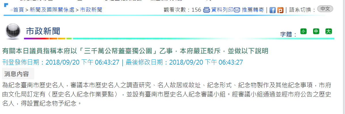 台南市政府回擊國民黨台南市議員新聞稿