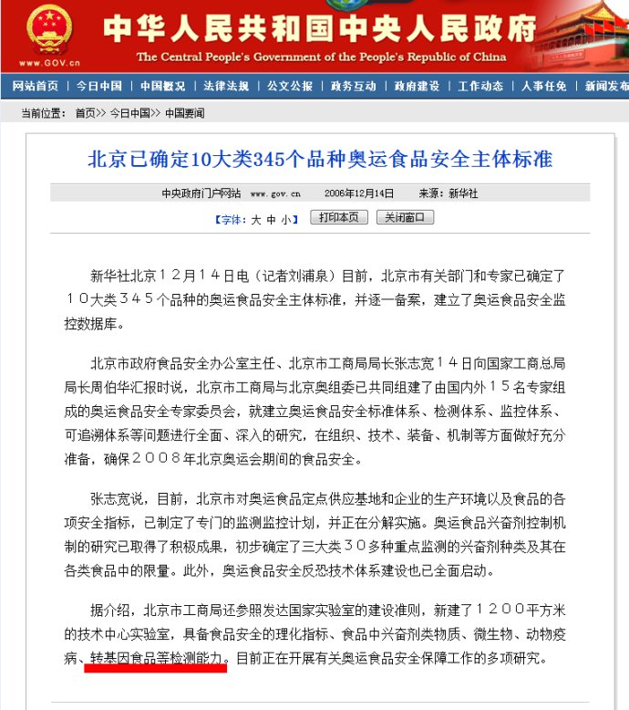 一、北京奧組委禁止轉基因證據這是2008年的文章: