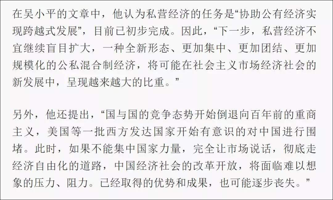 當然邱小平領導至少本身説的是沒有問題的,另外一位建議“私營經濟應逐步離場”的吳小平説的就露骨得多了。