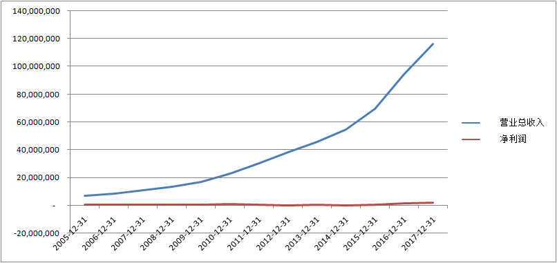 營業收入已經漲到了外太空,但是淨利潤永遠保持匍匐在地。