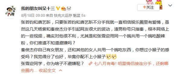 當然,也不怪張若昀反應大。畢竟這樣的微博都出現了出現。説真的,這超過了男閨蜜的線了吧。
