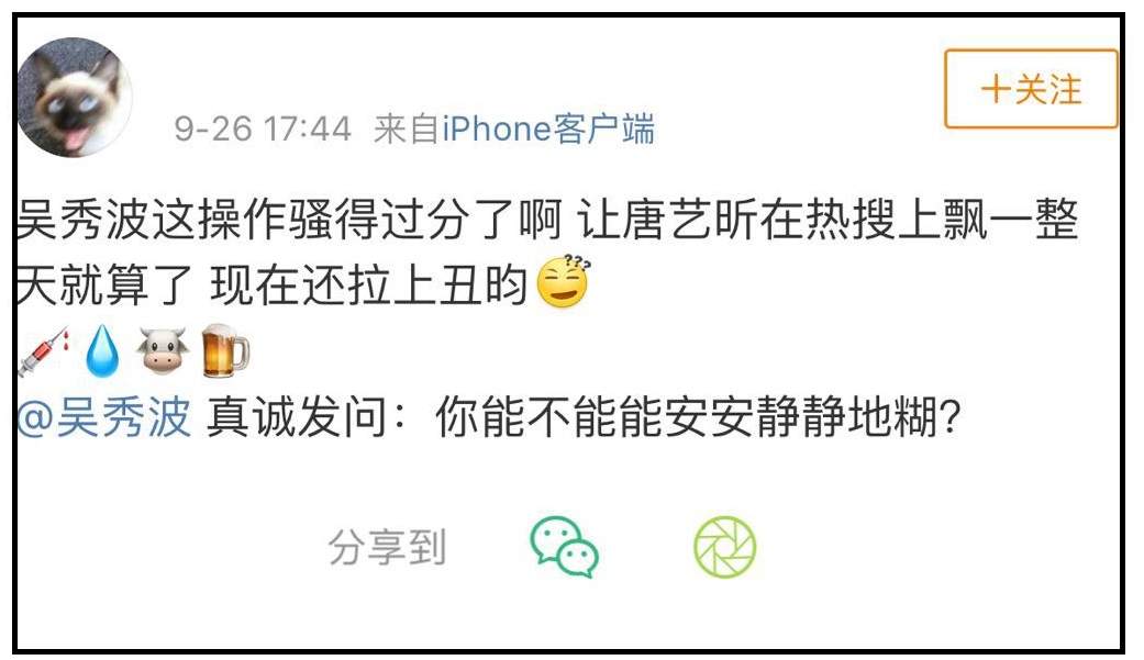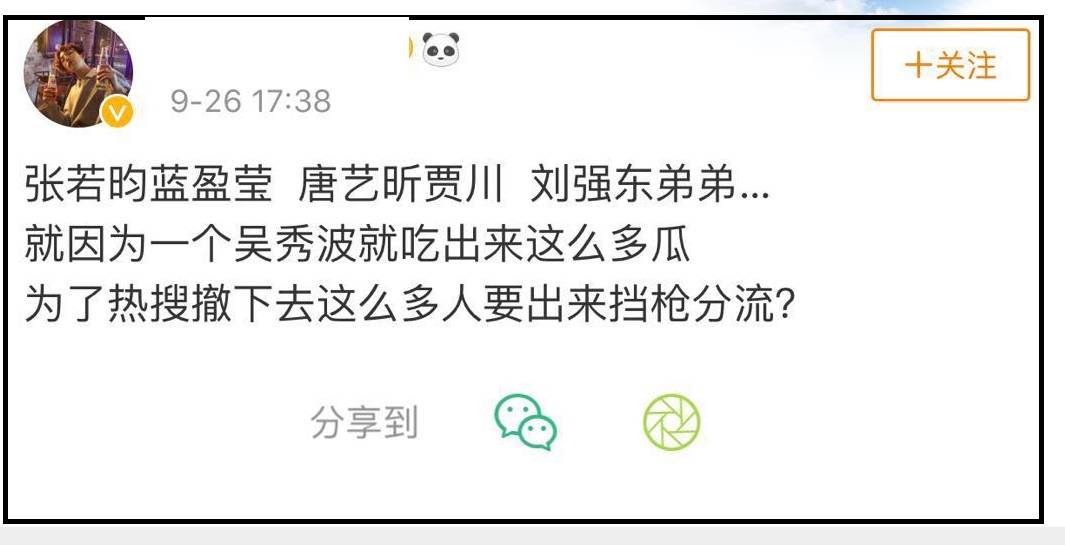這個畫風..有點不對吧。兩個人在一起了七八年相安無事,現下結婚之説都已滿天飛了,發生了好幾年的事才爆出來?而且,這個瓜發酵了這麼久,到現在都還沒有實際的錘子。反而是吳秀波的熱搜一路下滑,也不怪網友們議論紛紛。