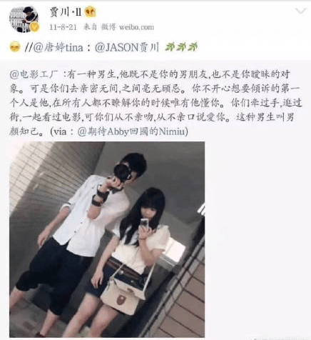 事情是這樣的,賈川是唐藝昕的經紀人。但是雙方關係一直很迷,除了經紀人以外,還有表兄妹以及同鄉一説。但是不管是什麼説法,唐藝昕和賈川關係很好,好到幾近曖昧這件事,是板上釘釘了的。嗯,還是男女主人公自己釘上去的。