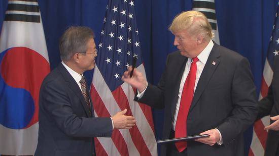 特朗普簽字後當場把筆送給文在寅 韓國網友炸鍋_風聞