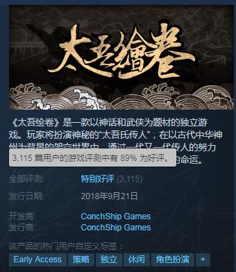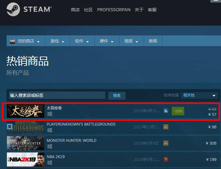最近有一款叫做《太吾繪卷》的國產遊戲,超越《絕地求生:大逃殺》、《怪物獵人:世界》和《NBA 2K19》等一眾國外大廠作品,一舉登上了STEAM熱銷榜的首位。
