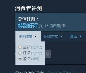 截至目前,該遊戲在STEAM上已經收穫了3512個評價,其中3127個好評,385個差評。