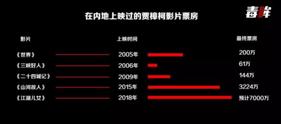 賈樟柯2002年第一次提名戛納的金棕櫚獎時,國內總票房才9億元;到了去年,這個數字已經達到了560億。同期的第六代導演中,甯浩等人已經成為了票房的有力保障,市場上多位新人導演都有了10億+的代表作。面對越來越大的國內電影市場,賈樟柯似乎也想在票房上證明自己。
