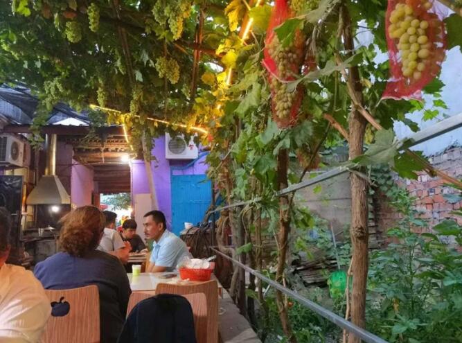 ▲吃饢坑肉的維族小院兒,這頓肉吃的不怎麼踏實,心裏一直惦記着頭頂上的葡萄