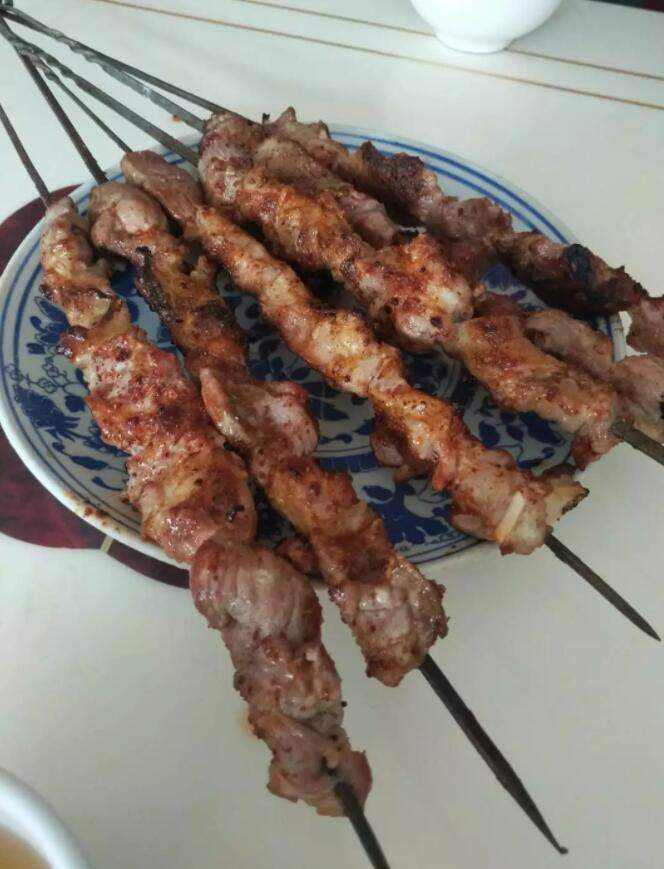 如無特指,新疆的烤肉都是羊肉做的,少數情況下會有牛肉。我在新疆轉悠了一個月,只在特克斯(就是航拍中國裏的八卦城)一家漢人開的館子裏見過牛肉串,這是新疆烤肉的底線了——那個説豬肉的同學,請你出去清醒一下。