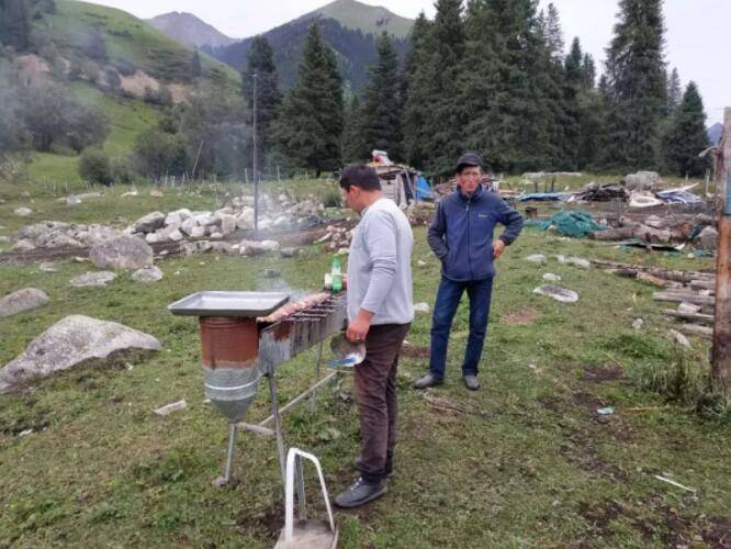 ▲在瓊庫什台烤肉的哈薩克族大哥