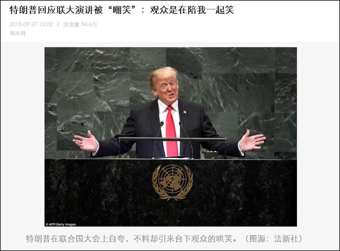 特朗普在26日的新聞發佈會上表示,媒體報道觀眾在聯合國大會上嘲笑自己是“假新聞”。