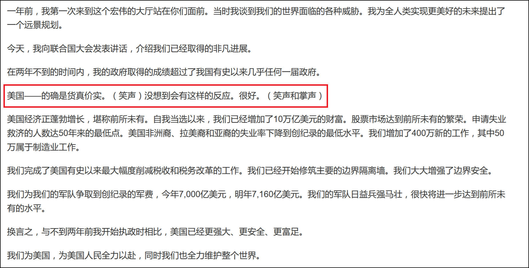 美國總統特朗普在第73屆聯合國大會上的講話(全文)_風聞