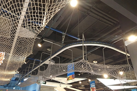 上海一家超市,客户通過APP下單的商品會通過空中傳送帶直接送到配送員處。