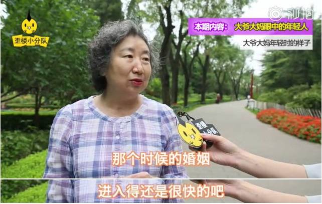這位穿格子的阿姨説,自己的那個年代,進入婚姻是進入得很快的,周圍的同齡人都是在差不多的年紀了就結婚了,跟現在很不一樣。
