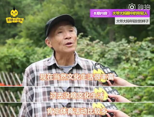 格子襯衫的大爺説,過去的文化生活不如現在豐富,有的也只是體育活動。