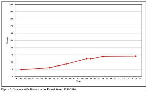 美國公民具有科學素質的比例:1988-2016