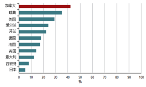 2)與加拿大42%(2014年)、瑞典35%(2005年)等國家差距甚遠。