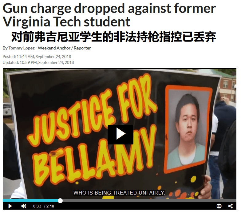 剛到美國弗吉尼亞理工大學留學的19歲的中國留學生,趙雲松(音,Yunsong Zhao)被警方逮捕。被捕原因是警方懷疑他非法持有槍支和彈藥。