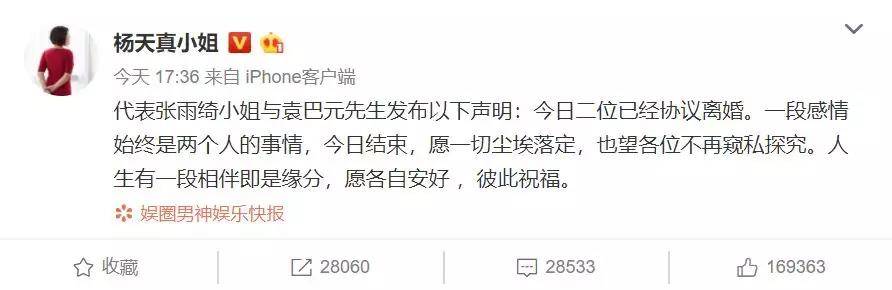 幾乎同時,另一位女明星,張雨綺,也通過經紀人宣佈,她與結婚兩年的丈夫袁巴元離婚,兩人育有一對雙胞胎。