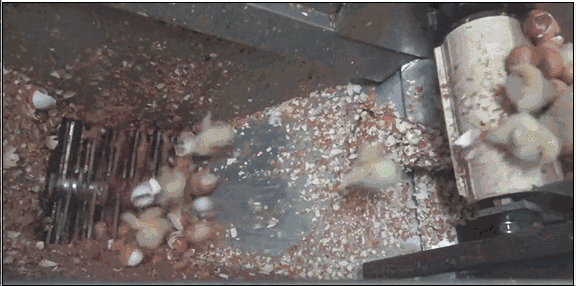 因為無法下蛋且不是肉雞,就會被「極有效率」地送上傳送帶,進入絞肉機。