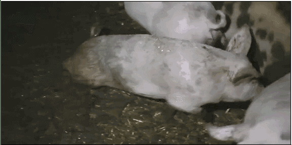 他們被拔掉牙齒,剪掉尾巴,沒有緩解疼痛的措施,3-5周後,從媽媽身邊帶走,開始了自己作為肉豬的一生。