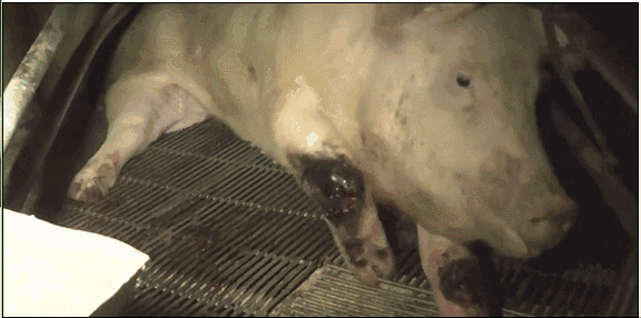 氣體灼傷他們的眼睛、鼻腔、喉嚨、肺部,直到窒息。母豬因為體型太大,毒氣容易失效,這時候,她們會遭遇再次電擊。