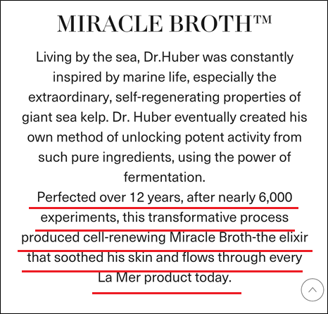 那麼到這裏基本可以判斷,這個物理學博士實驗爆炸被燒傷後發明了逆天修護面霜的故事,應該是雅詩蘭黛自己編造出來的。這事兒呢雖然説是有欺騙的成分在,但是倒也不算啥大事兒,為了賣出產品,編個故事無傷大雅,然而重點是,**海藻提取物的實驗無法重複!**然後雅詩蘭黛的做法也是謎……他們請了靈媒來和Max Huber進行通靈???!!!
