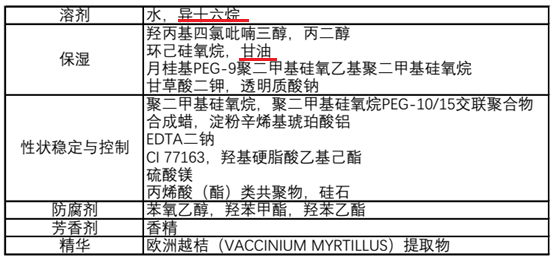 哎?怎麼好像也是雪花膏的那些東西,水,甘油,異十六烷啥的,好像沒啥大差別嘛……