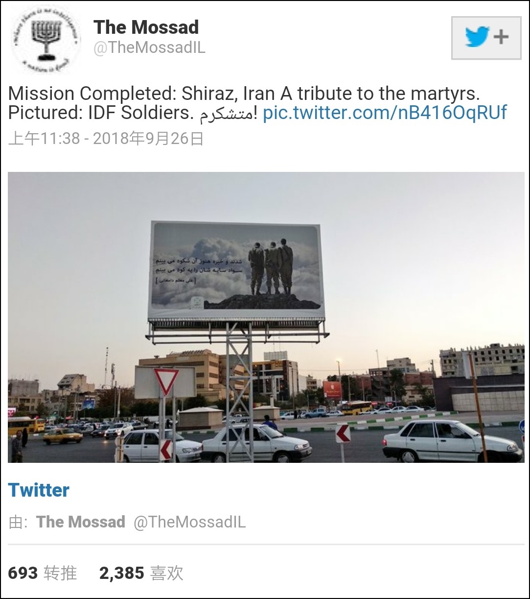 當地時間9月22日,伊朗一年一度的“神聖防禦周”正式開始,以紀念兩伊戰爭爆發38週年。按照慣例,在此期間伊朗全國將舉行各種各樣的紀念或慶祝活動,包括在全國舉行閲兵式、張貼和懸掛紀念條幅等。而據伊朗網友日前在社交網站上發佈的消息稱,今年的紀念活動出現了十分嚴重的烏龍事件。在伊朗西南部法爾斯省的設拉子市內設立的紀念兩伊戰爭中陣亡伊朗士兵的廣告牌上,竟然錯用了以色列士兵的照片。