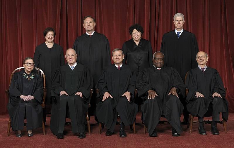 美國最高法院一共有9名大法官,其中1名是首席法官。要知道,大法官的任職可是終身制的,也就是説,除了他們死亡、或自己辭職、或被國會彈劾並被定罪(目前沒有大法官因為國會彈劾下台)以外,沒人可以解僱他們。美國國會兩年一選,總統四年一選,而大法官卻可以幹一輩子,因此選誰當大法官影響深遠。為什麼大法官要設計成奇葩的終身制?據説是為了解決他們的後顧之憂,使他們不至於為了保住工作而做出違心的判決。如果每個老闆都能這麼想就好了,哎!