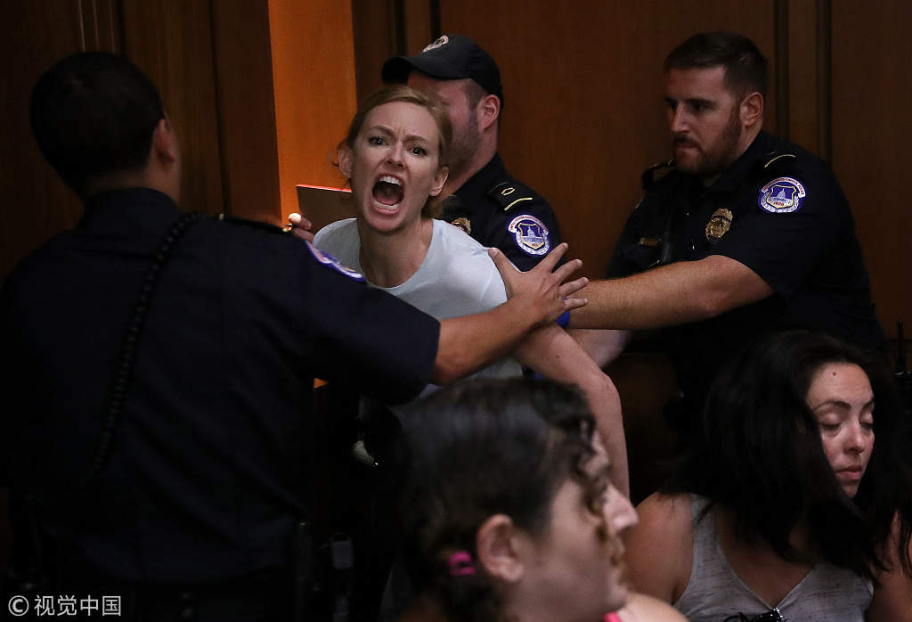 9月4日-7日,美國會參議院司法委員會就卡瓦諾的任命舉行了聽證會,幾天的聽證會狀況不斷,民主黨議員的發難和反對者的抗議相互呼應,使得聽證會變成了一場政治鬧劇。聽證會後,司法委員會原定於9月20日對提名進行投票表決,卡瓦諾幾乎已經提前鎖定了大法官職位。