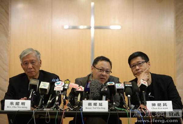 由左至右為“佔中三醜”朱耀明[8]、戴耀廷[9]、陳健民[10]
